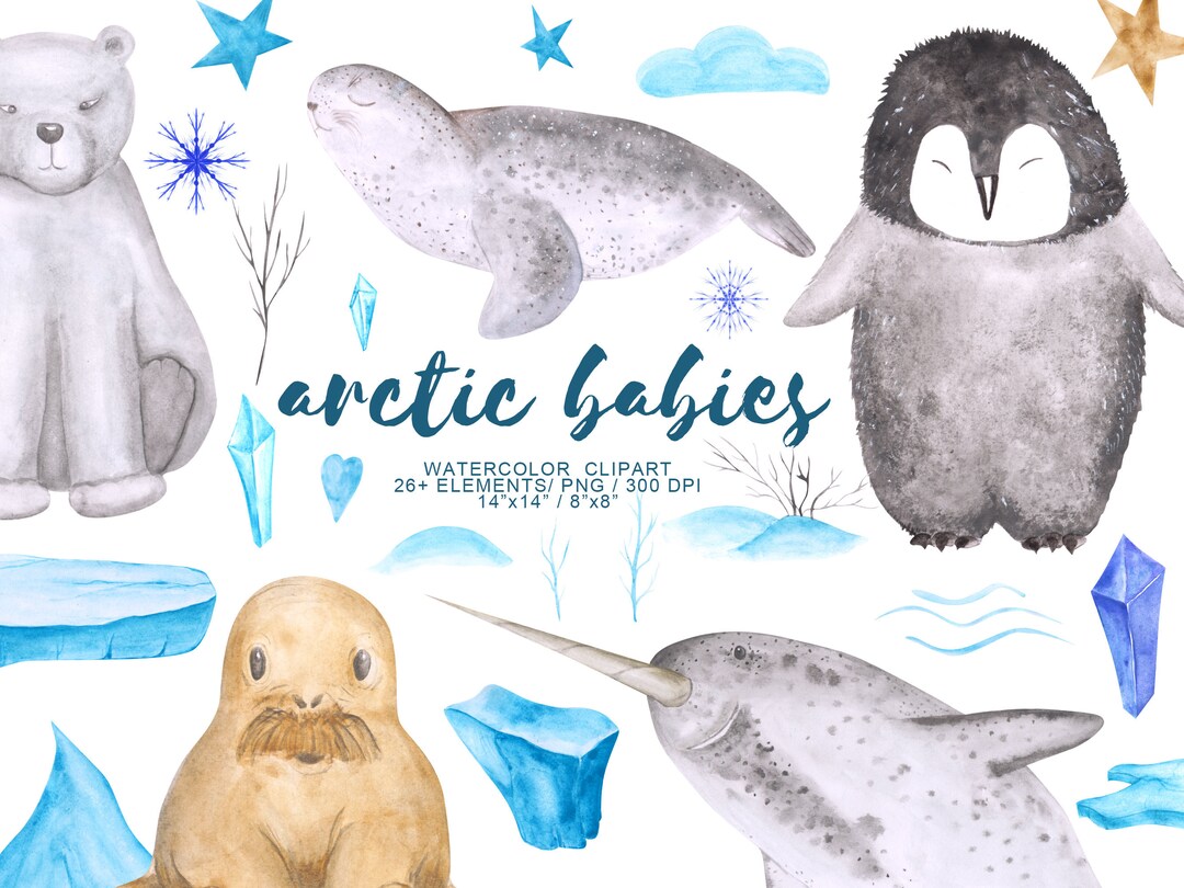 Buy Watercolor Winter Clipart Arctic Animals Printable Online In India Etsy